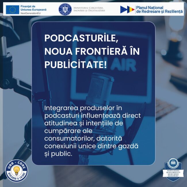 Un studiu realizat de cercetători de la Universitatea Babeș-Bolyai și Universitatea de Vest din Timișoara – Anca-Maria Milovan, Costinel Dobre și Ovidiu-Ioan Moisescu – publicat în prestigiosul jurnal Journal of Business Research, analizează modul în care plasarea integrată de produse în podcasturi influențează comportamentul consumatorilor. Cercetarea s-a concentrat pe ascultătorii din România, un context…