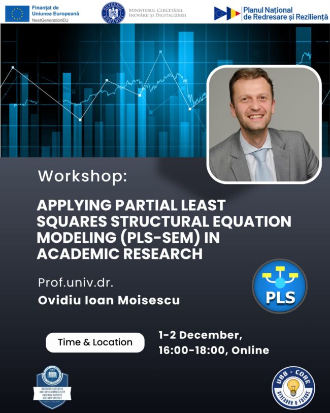 [vc_row][vc_column width="1/2"][vc_column_text css=""]În perioada 1–2 decembrie 2025, are loc workshopul online „Applying Partial Least Squares Structural Equation Modeling (PLS-SEM) in Academic Research”, susținut de Prof. Ovidiu Ioan Moisescu, Facu…