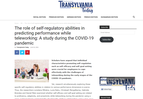Un studiu recent realizat de Elena Cristina Manole și Petru Lucian Curșeu în cadrul Work and Organizational Psychology Research Centre (WOP-RC) din Universitatea Babeș-Bolyai, publicat în Personality and Individual Differences, investighează impactul pandemiei COVID-19 asupra stabilității emoționale, sănătății mentale și satisfacției cu viața. Studiul se bazează pe date colectate în două valuri, din 2019 și 2020, de la un eșantion probabilistic al populației olandeze.